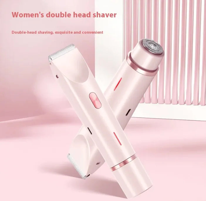 The SilkSmoothâ„¢ 2-in-1 Women's Double Head Shaver & Pubic Hair Trimmer is designed for complete body hair removal, offering both precision and comfort. This versatile electric razor features dual heads, one for gentle shaving and the other for trimming delicate areas, ensuring a smooth and clean result wherever you need it. Its wet and dry functionality allows you to use it in the shower or on dry skin, making it convenient for all lifestyles. With hypoallergenic blades and a rechargeable battery, it provides a safe, efficient, and long-lasting solution for smooth, flawless skin.